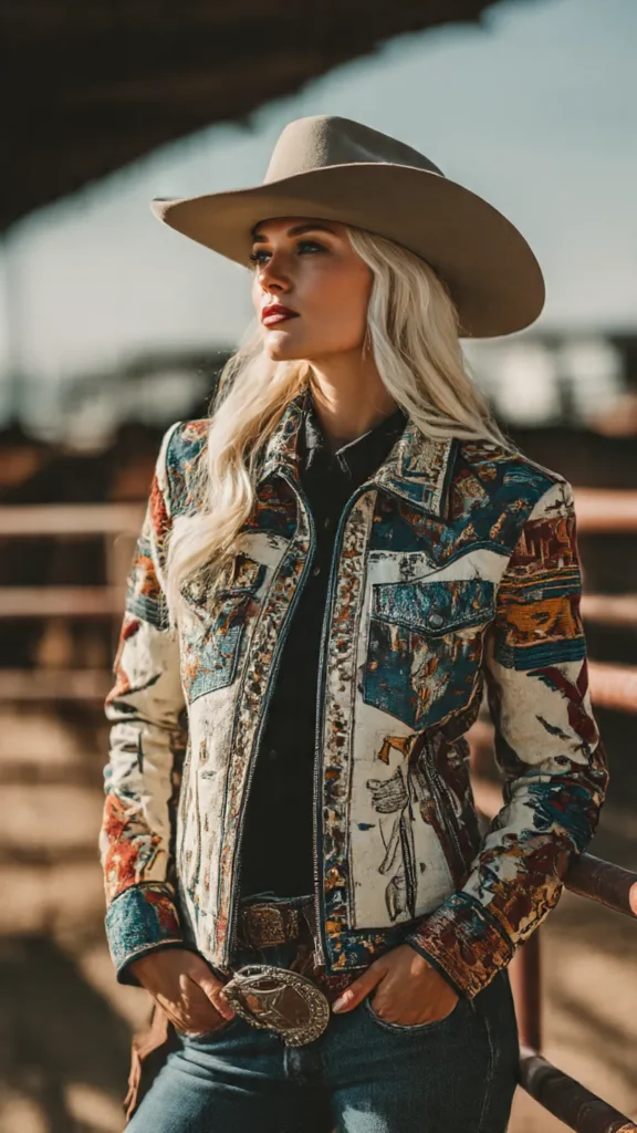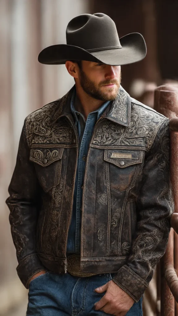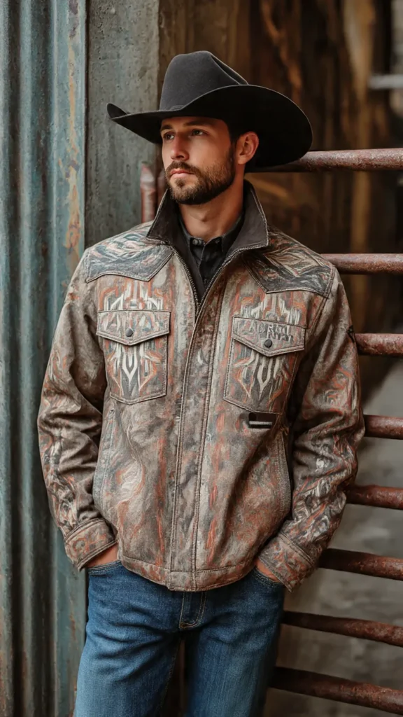 With green, white, and red flag details embroidered or printed on the sleeve or back, this jacket stands out whether you’re at a rodeo, concert, or casual outing.