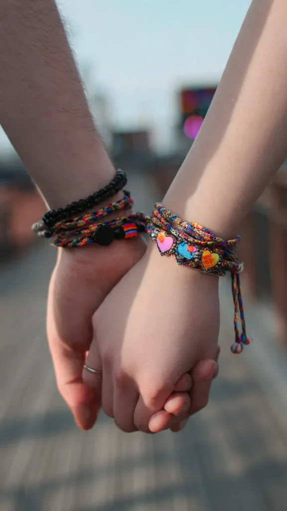 Matching bracelets feel romantic without being overly fancy.