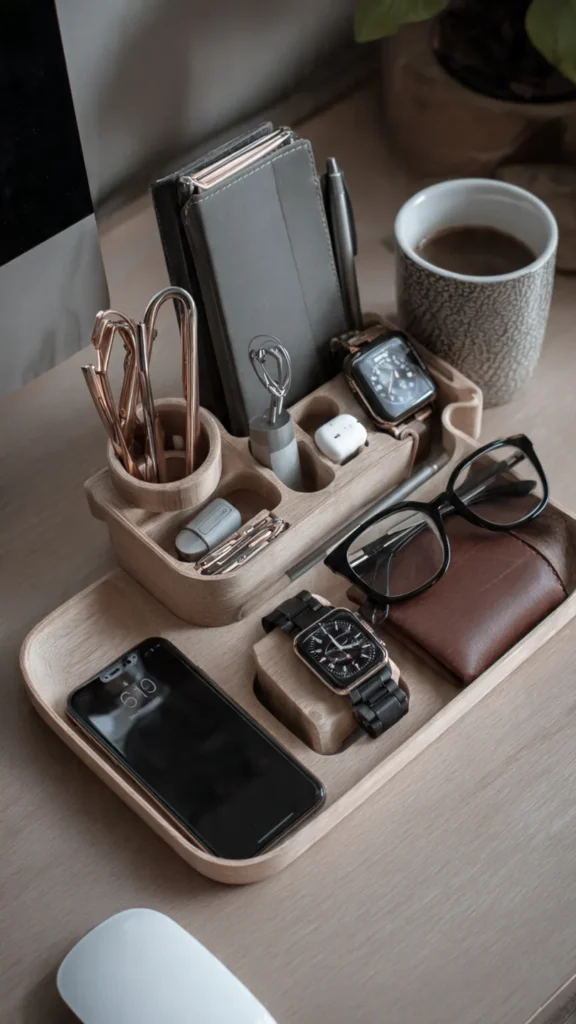 For boyfriends who love gadgets, gaming, or study setups — a DIY desk organizer is practical.